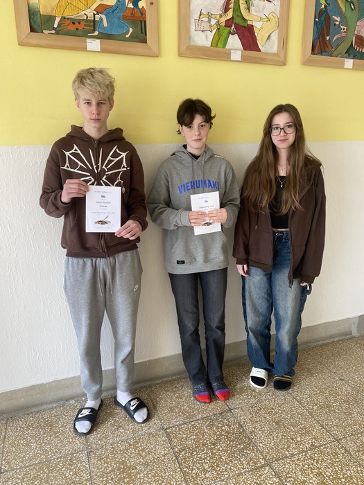 První tři vítězné příčky obsadila nejen díky svým zkušenostem, ale především nezvyklému jazykovému rozhledu naše želízka v ohni z minulého roku a dvojici žen gendrově doplnil i zástupce opačného pohlaví. Gratulujeme tak k 1. místu Aleně Veselkové (9. A), ke 2. příčce Heleně Štouračové (9. A) a blahopřání letí zaslouženě i na 3. pozici Jiřímu Merelovi (9. C).