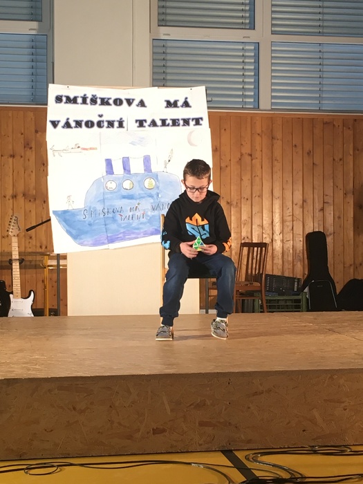 Dne 21.12. se uskutečnila ve velké tělocvičně akce Smíškova má vánoční talent, která byla pořádána skupinou členů Školního parlamentu. V rámci soutěžního dopoledne jsme mohli vidět mnoho tanečních a pěveckých vystoupení, ale také neobyčejné disciplíny, například parkour, skládání hlavolamů, divadelní improvizaci apod. Soutěžilo se ve třech kategoriích, 1.- 3. třídy, 4.- 6. třídy a 7.- 9 . třídy. Celá akce byla moderována členy ŠP. Vítěze z každé kategorie vybírala porota složená z učitelů a žáků školy. Účast byla veliká. Zhlédli jsem celkem 26 vystoupení, přičemž v publiku bylo přes 500 diváků.